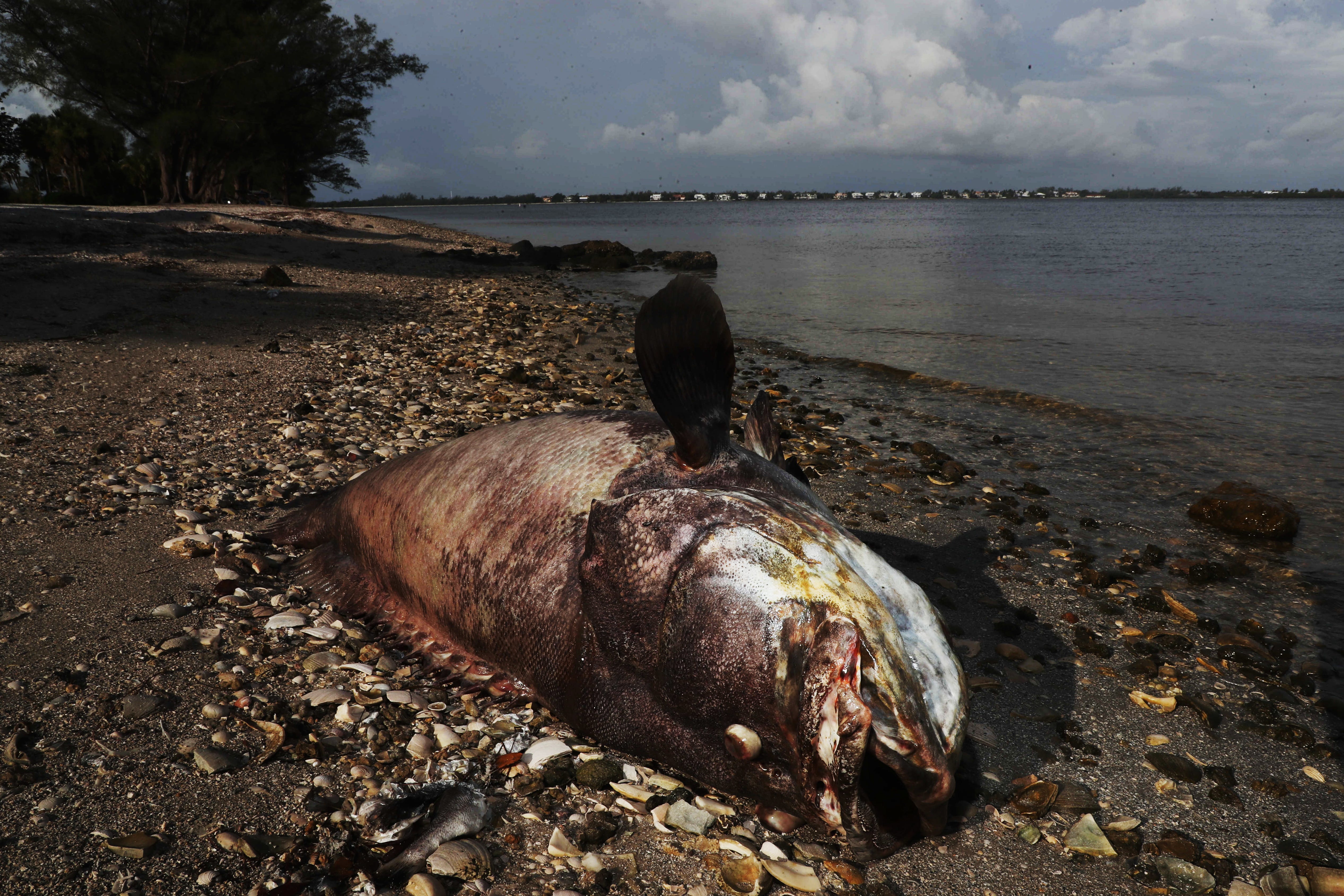 A strong red tide has plagued the region since October, and the bloom may not break up until colder temperatures arrive this winter.